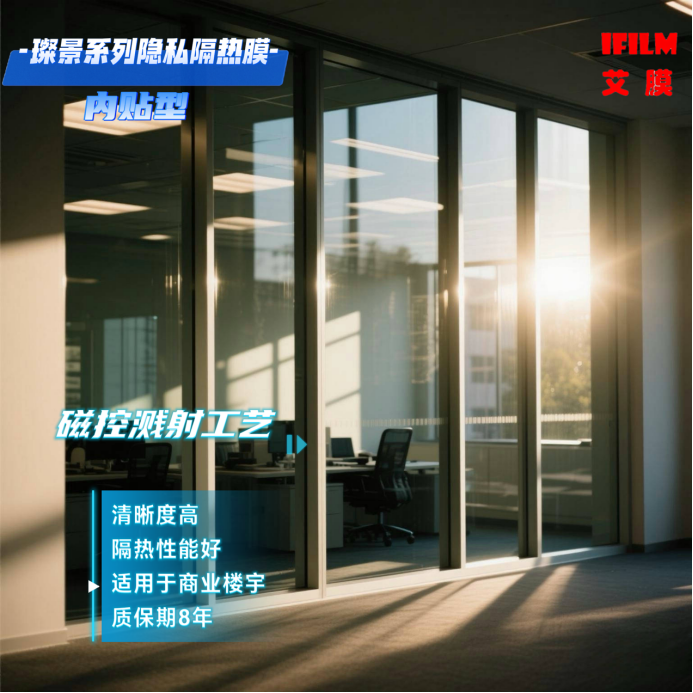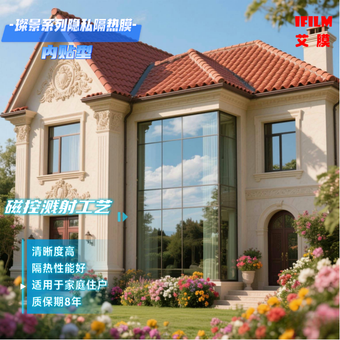 艾膜璨景系列隐私隔热膜(如P015、P025、P050)是一款专业级建筑与汽车用隔热膜,主打高隐私性与高效隔热性能。以下从核心特点、适用场景及核心优势三方面综合分析,结合技术参数与实测数据: